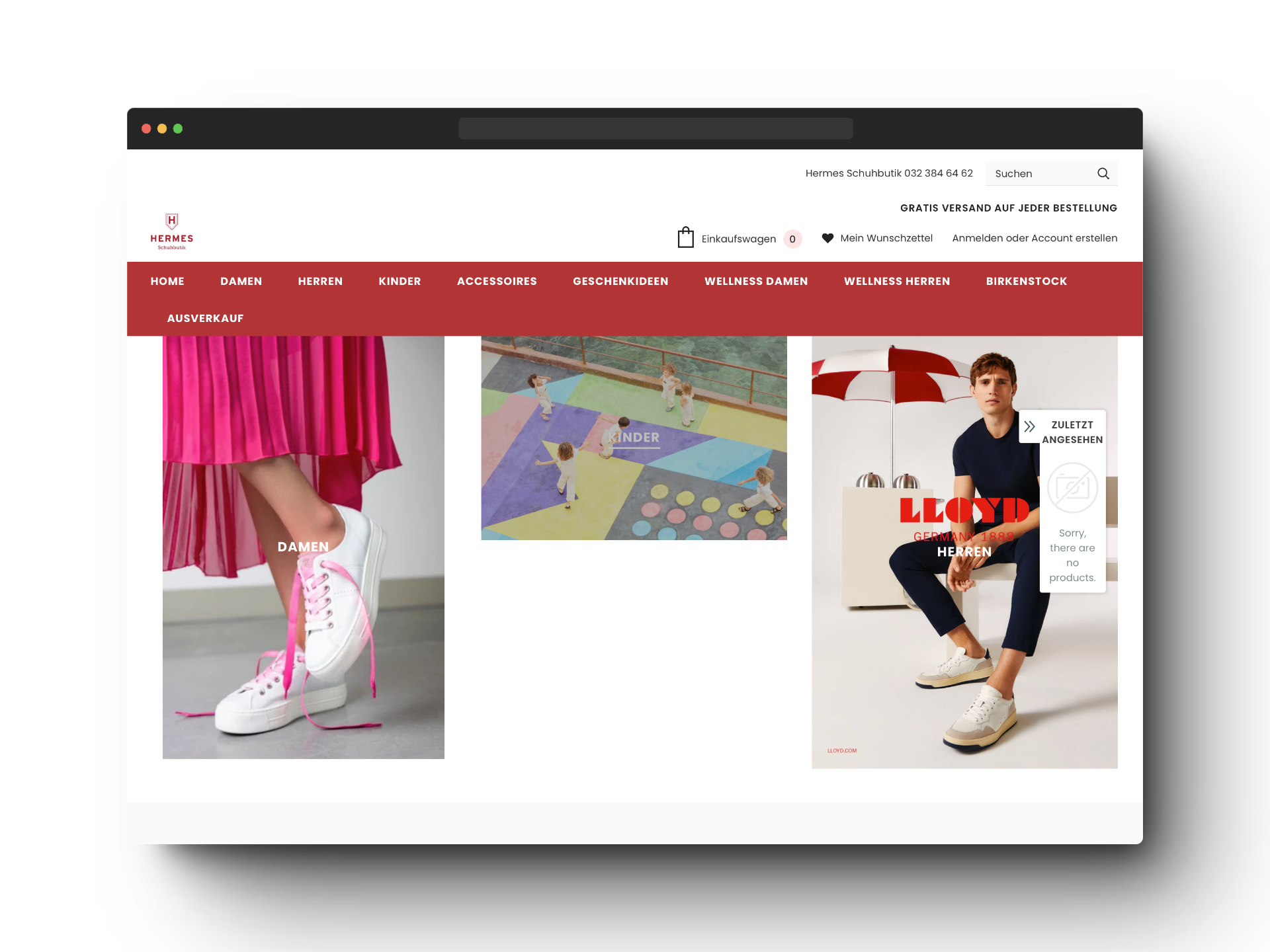 Die Hermes Schuhbutik in Lyss ist ein Schuhladen mit rund 5 Mitarbeitenden. Zum Start des Webshops war der Shopify Shop noch leer, während die Artikelinformationen bereits im hauseigenen HIS gepflegt wurden.